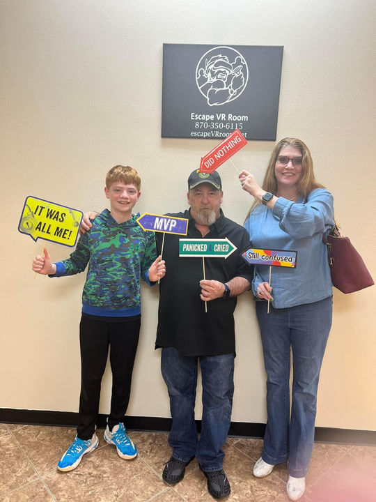 We are a family born and raised in Northwest Arkansas. We have always enjoyed traditional escape rooms with our children. Raising teenage boys kept us up to date on technology and virtual reality software. We came across an opportunity to merge two ideas we love and it was a no brainer.